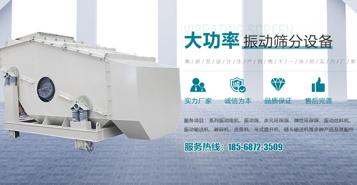 • 主要產品有系列振動電機、振動篩、多元環保篩、彈性環保篩、振動給料機、振動輸送機、破碎機、皮帶機、斗式提升機、鏈斗輸送機等多種產品